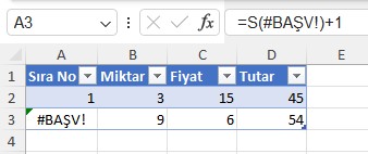 Ancak Tablo’nun dışına (üstüne) bir satır eklerseniz, hatalı sıra numarası ile karşılaşırsınız. Bunu Düzeltmek için önceki formüldeki -1’i, -2 yapmanız gerekir.